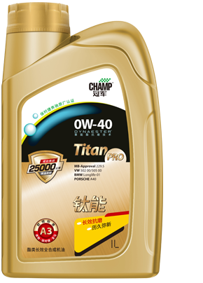 冠軍鈦能0W-40 A3/B4酯類長效全合成機油,采用DYNAESTER聚能酯長效抗磨技術1,擁有出色的持久抗氧化和抗磨損性能,成功挑戰(zhàn)25000公里換油周期2,引擎歷久彌新。